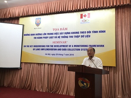 Tại Tọa đàm, các chuyên gia Việt Nam và Canada đã có những trình bày mang tính định hướng lớn cho việc xây dựng Khung theo dõi thi hành pháp luật và hệ thống thu thập dữ liệu. Những trình bày này là kết quả của một một quá trình nghiên cứu được thực hiện từ khi khởi động hoạt động xây dựng Khung theo dõi và hệ thống thư thập dữ liệu từ tháng 6/2016 và một tuần làm việc tập trung của chuyên gia, Dự án NLD và Cục Quản lý xử lý vi phạm hành chính và theo dõi thi hành pháp luật với ông Eric Milligan chuyên gia Canada. Theo chuyên gia cao cấp Dương Thanh Mai, nguyên Viện trưởng Viện khoa học pháp lý, Bộ Tư pháp thì theo dõi thi hành pháp luật cần được thực hiện theo cách tiếp cận mới là theo dõi và đánh giá dựa trên kết quả. Cụ thể, việc áp dụng đánh giá dựa trên kết quả vào quản lý quá trình theo dõi thi hành pháp luật được thực hiện bằng việc đánh giá theo các chỉ số kết quả (kết quả thi hành chính sách, pháp luật) và cao nhất là chỉ số tác động/ảnh hưởng của việc thực hiện chính sách, pháp luật so với các mục tiêu tác động được dự báo khi xây dựng chính sách, pháp luật và bằng việc theo dõi các chỉ số đầu vào (các điều kiện thi hành, cơ chế pháp lý bảo đảm) và các chỉ số đầu ra (mức độ thực thi pháp luật, hiệu quả thi hành pháp luật…) và các chỉ số kết quả, tác động dựa trên Hệ thống thu thập dữ liệu. Trên cơ sở nghiên cứu bước đầu, phạm vi theo dõi và đánh giá thi hành pháp luật theo kết quả được thực hiện trên 03 cấp độ: (1) Tổ chức thi hành pháp luật nói chung - phạm vi rộng nhất - theo dõi và đánh giá thi hành cả hệ thống pháp luật trên phạm vi toàn quốc; (2) Tổ chức thi hành và theo dõi thi hành pháp luật liên quan đến ngành, lĩnh vực trong phạm vi toàn quốc (Bộ trưởng, Thủ trưởng cơ quan ngang Bộ); (3) Tổ chức thi hành và theo dõi thi hành một đạo luật. Theo đó, cần thiết kế Khung theo dõi thi hành pháp luật và hệ thống thu thập dữ liệu theo yêu cầu đặc thù của việc theo dõi thi hành pháp luật ở mỗi cấp độ khác nhau.