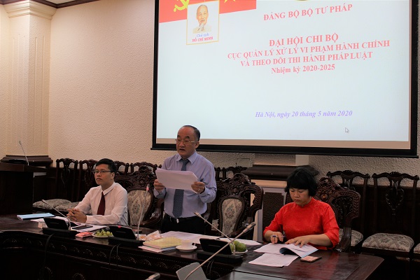 Ngày 20 tháng 5 năm 2020, Đại hội Chi bộ Cục Quản lý xử lý vi phạm hành chính và theo dõi thi hành pháp luật (Cục QLXLVPHC&TDTHPL) nhiệm kỳ 2020-2025 đã được tổ chức tại Trụ sở Bộ Tư pháp và thành công tốt đẹp. Đồng chí Nguyễn Kim Tinh, Phó Bí thư thường trực Đảng ủy Bộ Tư pháp đã đến dự và chỉ đạo Đại hội. Các đồng chí: Nguyễn Hồng Tuyến, Ủy viên Ban Thường vụ Đảng ủy - Vụ trưởng Vụ Các vấn đề chung về xây dựng pháp luật, cấp ủy cấp trên phụ trách Chi bộ, Đỗ Xuân Lân, Chánh Văn phòng Đảng – Đoàn thể, Cao Xuân Thủy, Ủy viên Ban chấp hành Đảng bộ, Phó Chủ nhiệm Ủy ban Kiểm tra Đảng ủy, Phó Chánh Văn phòng Đảng - Đoàn thể Bộ Tư pháp cũng đã trực tiếp đến tham dự và chức mừng thành công của Đại hội Chi bộ Cục QLXLVPHC&TDTHPL.