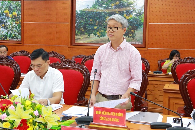 Tiếp và làm việc với Đoàn kiểm tra có đồng chí Bùi Văn Khánh - Chủ tịch Ủy ban nhân dân tỉnh Hòa Bình cùng đại diện Lãnh đạo các sở, ngành (Sở Tư pháp, Sở Nông nghiệp và Phát triển nông thôn, Sở Giao thông vận tải, Sở Tài nguyên và Môi trường, Công an tỉnh, Sở Xây dựng, Sở Công Thương, Cục Quản lý thị trường,…) và các đơn vị có liên quan.