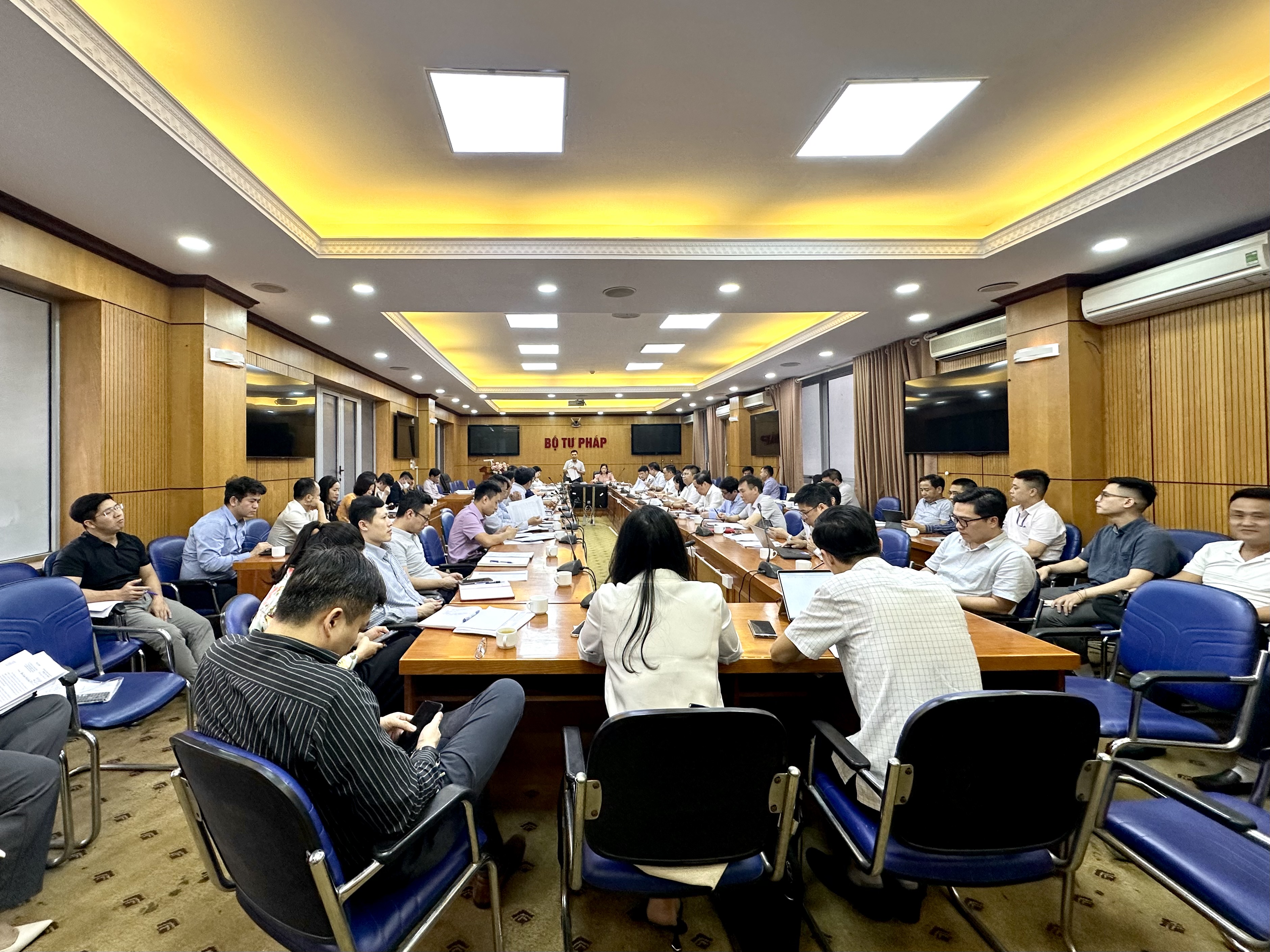 Buổi làm việc do ông Nguyễn Quốc Hoàn – Cục trưởng Cục Quản lý xử lý vi phạm hành chính và theo dõi thi hành pháp luật chủ trì và bà Nguyễn Thanh Hà – Phó Cục trưởng Cục Cục Quản lý xử lý vi phạm hành chính và theo dõi thi hành pháp luật đồng chủ trì. Tham dự buổi làm việc gồm có đại diện của một số đơn vị thuộc các bộ: Khoa học và Công nghệ, Tài chính, Thông tin và Truyền thông, Công an, Y tế, Quốc phòng, Công Thương, Kế hoạch và Đầu tư, Lao động – Thương binh và xã hội; đại diện Bảo hiểm xã hội Việt Nam, Ban Cơ yếu Chính phủ; đại diện Cục Bổ trợ tư pháp thuộc Bộ Tư pháp.