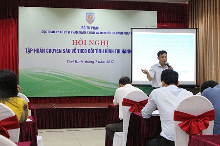 Thực hiện Quyết định số 506/QĐ-BTP ngày 10/4/2017 của Bộ trưởng Bộ Tư pháp Phê duyệt Kế hoạch tổ chức hội nghị, hội thảo, tọa đàm, tập huấn và các đoàn thanh tra, kiểm tra, khảo sát của Bộ Tư pháp năm 2017, Cục Quản lý xử lý vi phạm hành chính và theo dõi thi hành pháp luật đã tổ chức Hội nghị tập huấn chuyên sâu về theo dõi tình hình thi hành pháp luật tại Thái Bình nhằm tăng cường các kiến thức chuyên sâu và các kỹ năng cụ thể về tình hình theo dõi thi hành pháp luật cho các đại biểu là đại diện Lãnh đạo, cán bộ công tác tại các Sở Tư pháp, đại diện Lãnh đạo và cán bộ làm công tác theo dõi thi hành pháp luật của các Sở, ban ngành thuộc 4 tỉnh Thái Bình, Hưng Yên, Hải Phòng, Hải Dương.