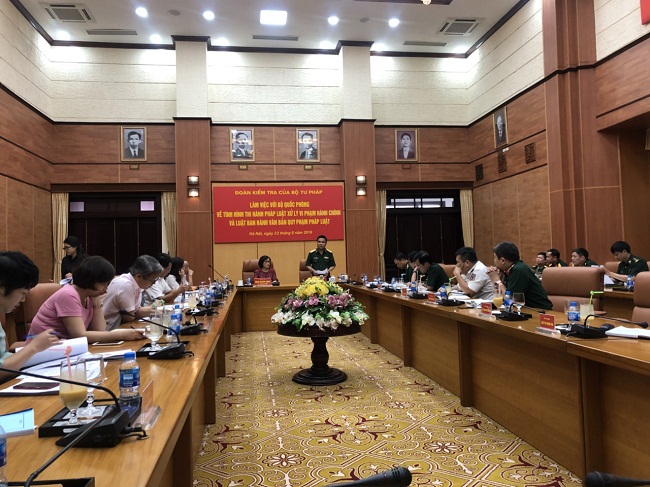 Tại buổi làm việc, đồng chí Đặng Hoàng Oanh - Thứ trưởng Bộ Tư pháp - Trưởng đoàn kiểm tra đã nhấn mạnh về ý nghĩa đặc biệt quan trọng của việc triển khai thực hiện nhiệm vụ quản lý công tác thi hành pháp luật về xử lý vi phạm hành chính, Luật ban hành văn bản quy phạm pháp luật năm 2015 và Kế hoạch số 1141/KH-BCSĐCP triển khai thực hiện kết luận số 01-KL/TW, đặc biệt là đối với Bộ Quốc phòng là Bộ quản lý nhà nước về xây dựng nền quốc phòng toàn dân, quân đội nhân dân và dân quân tự vệ, bảo vệ vững chắc độc lập, chủ quyền và toàn vẹn lãnh thổ của tổ quốc. Hoạt động kiểm tra nhằm đánh giá việc triển khai, chỉ đạo thực hiện công tác quản lý thi hành pháp luật về xử lý vi phạm hành chính và tình hình xử phạt vi phạm hành chính của các chức danh có thẩm quyền xử phạt, Luật ban hành văn bản quy phạm pháp luật và Kế hoạch số 1141-KH/BCSĐCP thực hiện Kết luận số 01-KL/TW, góp phần thúc đẩy hiệu quả hoạt động, nâng cao nhận thức của các đơn vị, tổ chức thuộc Bộ trong công tác này.