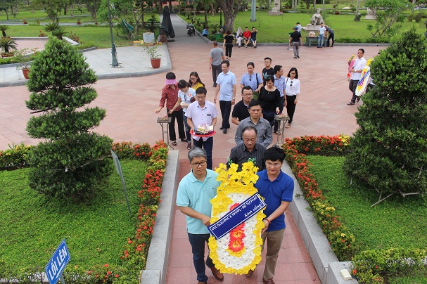 Chuyến hành trình của Đoàn tiếp tục đến với Nghĩa trang Liệt sỹ Quốc gia Trường Sơn và Nghĩa trang liệt sỹ Quốc gia Đường 9. Đây là 02 nghĩa trang cấp Quốc gia, mỗi nơi quy tập hơn 10.000 hài cốt các liệt sĩ đã chiến đấu, hy sinh trên tuyến đường Trường Sơn huyền thoại - còn đường còn được gọi là “Đường mòn Hồ Chí Minh”, phục vụ chiến đấu trên đường 9, đất bạn Lào trong cuộc kháng chiến chống Mỹ. Dẫu đều biết sự khốc liệt của chiến tranh nhưng khi đến thăm 2 nghĩa trang cấp Quốc gia ở Quảng Trị mới thấy sự khốc liệt khủng khiếp của chiến tranh đã cướp đi hàng vạn sinh mạng con người ưu tú của dân tộc đã anh dũng chiến đấu bảo vệ Tổ Quốc. Tới đây, ai cũng nghẹn ngào xúc động, khâm phục, với lòng biết sâu sắc thành kính thắp những nén nhang tri ân lên các phần mộ cho các anh hùng liệt sỹ.
