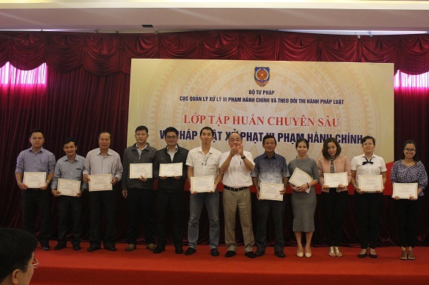 Kết thúc chương trình Lớp tập huấn, đồng chí Cục trưởng Cục Quản lý xử lý vi phạm hành chính và theo dõi thi hành pháp luật, Bộ Tư pháp đã trao Giấy chứng nhận cho các học viên hoàn thành chương trình tập huấn chuyên sâu về pháp luật xử phạt vi phạm hành chính do Cục tổ chức ./.