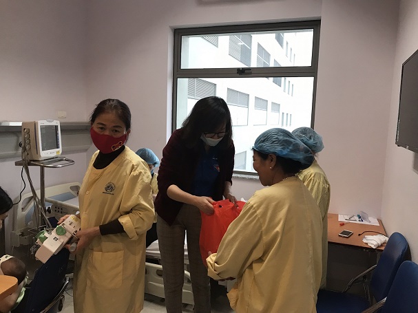 Tại Trung tâm Tim mạch, Bệnh viện nhi Trung ương, Đoàn đã đến hỏi thăm và trao tặng 15 suất quà cho các cháu có hoàn cảnh đặc biệt khó khăn và 45 cháu khác đang điều trị tại Trung tâm. Các bệnh nhi hầu hết là người dân tộc thiểu số, gia đình thuộc diện hộ nghèo và không đủ điều kiện kinh tế để chữa trị, phẫu thuật tim.