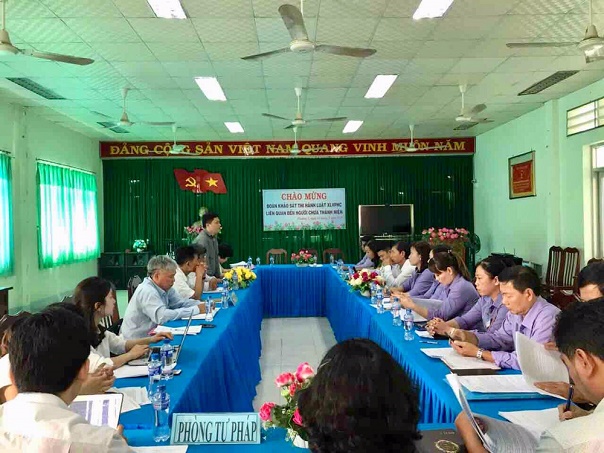 Tiếp theo, ngày 14-15/3/2019, tại tỉnh Đồng Tháp, Đoàn khảo sát đã tiến hành các hoạt động bao gồm tổ chức Tọa đàm, thu thập số liệu, phỏng vấn trực tiếp và khảo sát qua phiếu hỏi đối với một số đối tượng là người chưa thành niên bị xử lý vi phạm hành chính; cán bộ, công chức, viên chức làm công tác quản lý, người có thẩm quyền xử lý vi phạm hành chính, công chức Tư pháp – Hộ tịch, cán bộ Công an, Tòa án, công chức Văn hóa –Xã hội và một số cán bộ, công chức, viên chức làm công tác quản lý, giám sát, giáo dục người chưa thành niên vi phạm pháp luật tại Ủy ban nhân dân xã Mỹ Tân; Ủy ban nhân dân phường 1 (thành phố Cao Lãnh) và Sở Tư pháp tỉnh Đồng Tháp. Qua khảo sát, Đoàn đã thu thập, nắm bắt được nhiều thông tin, số liệu liên quan đến công tác xử lý vi phạm hành chính đối với người chưa thành niên vi phạm pháp luật và mô hình hỗ trợ “người chưa thành niên vi phạm pháp luật dựa vào cộng đồng” tại tỉnh Đồng Tháp.