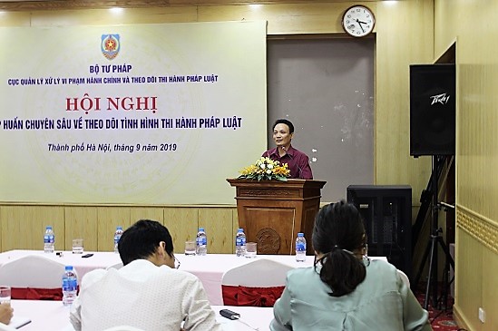 Nhằm nâng cao kiến thức, kỹ năng theo dõi tình hình thi hành pháp luật cho các cán bộ làm công tác theo dõi thi hành pháp luật tại các Bộ, Sở, ngành tại 05 tỉnh/thành phố Hà Nội, Phú Thọ, Vĩnh Phúc, Bắc Ninh, Thái Nguyên. Ngày 27/9/2019, Cục Quản lý xử lý vi phạm hành chính và theo dõi thi hành pháp luật đã tổ chức Lớp tập huấn chuyên sâu về theo dõi tình hình thi hành pháp luật tại Tp. Hà Nội.