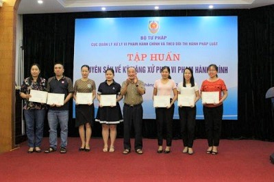 Kết thúc chương trình Lớp tập huấn, đồng chí Cục trưởng Cục Quản lý xử lý vi phạm hành chính và theo dõi thi hành pháp luật, Bộ Tư pháp đã trao Giấy chứng nhận cho các học viên hoàn thành chương trình tập huấn chuyên sâu về pháp luật xử phạt vi phạm hành chính.