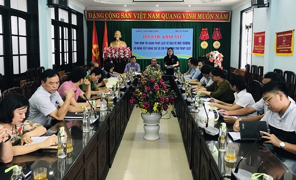 Thực hiện Quyết định số 1604/QĐ-BTP ngày 17/7/2020 của Bộ trưởng Bộ Tư pháp về việc thành lập Đoàn công tác liên ngành thực hiện việc kiểm tra, điều tra, khảo sát tình hình thi hành pháp luật về bảo vệ môi trường và nâng xếp hạng chỉ số chi phí tuân thủ pháp luật (chỉ số B1) tại một số tỉnh, thành phố trực thuộc trung ương, ngày 28-29/7/2020, Đoàn công tác liên ngành do ông Đặng Thanh Sơn, Cục trưởng Cục Quản lý xử lý vi phạm hành chính và theo dõi thi hành pháp luật (Cục QLXLVPHC&TDTHPL), Bộ Tư pháp làm Trưởng đoàn và các thành viên trong Đoàn gồm đại diện Bộ Tài nguyên và Môi trường, Bộ Công an, Bộ Tư pháp (Vụ Pháp luật dân sự - kinh tế, Cục QLXLVPHC&TDTHPL), đã tiến hành kiểm tra, điều tra, khảo sát công tác thi hành pháp luật về bảo vệ môi trường và nâng xếp hạng chỉ số chi phí tuân thủ pháp luật (Chỉ số B1) tại tỉnh Hà Nam và tỉnh Nam Định.