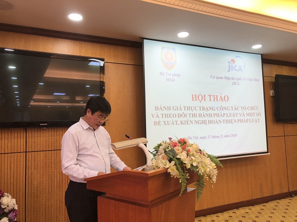 Phát biểu khai mạc, Cục trưởng Cục Quản lý xử lý vi phạm hành chính và theo dõi thi hành pháp luật (THPL) Đặng Thanh Sơn đánh giá: Công tác xây dựng pháp luật thời gian qua đã đạt được những thành tựu quan trọng, tuy nhiên công tác tổ chức THPL lại chưa theo kịp yêu cầu của sự phát triển, bộc lộ những tồn tại, hạn chế. Trước bối cảnh đó, Văn kiện Đại hội Đại biểu toàn quốc lần thứ XII đã nêu rõ một số nội dung liên quan tới công tác THPL. Ban Cán sự Đảng Chính phủ đã giao “Bộ Tư pháp chủ trì tăng cường công tác theo dõi THPL; nâng cao năng lực phản ứng chính sách và các vấn đề mới phát sinh; nghiên cứu xây dựng Luật về tổ chức THPL”. Ngày 26/02/2018, Thủ tướng Chính phủ đã ký Quyết định số 242/QĐ-TTg phê duyệt “Đề án Đổi mới, nâng cao hiệu quả công tác tổ chức THPL giai đoạn năm 2018 – 2022”. Theo đó, xác định nhiệm vụ tiếp tục hoàn thiện pháp luật về tổ chức THPL theo hướng quy định rõ ràng về trách nhiệm, thẩm quyền và nội dung tổ chức THPL thông qua hoạt động nghiên cứu, xây dựng đề xuất chính sách phục vụ việc lập hồ sơ trình Chính phủ đề nghị xây dựng Luật về tổ chức THPL. Nhiệm vụ nghiên cứu xây dựng, hoàn thiện thể chế về tổ chức THPL cũng đã được xác định là một trong những nhiệm vụ ưu tiên hàng đầu của Bộ Tư pháp trong thời gian tới.