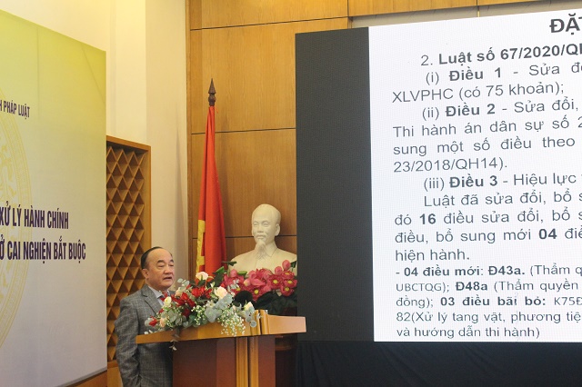 Tại hội nghị tập huấn các giảng viên đã tập trung truyền tải các nội dung liên quan đến một số vấn đề chung về pháp luật xử lý vi phạm hành chính và các biện pháp xử lý hành chính  - Một số điểm mới của Luật sửa đổi, bổ sung một số điều của Luật Xử lý vi phạm hành chính năm 2012 áp dụng các biện pháp xử lý hành chính giáo dục tại xã, phường, thị trấn và đưa vào cơ sở cai nghiện bắt buộc, đồng thời giới thiệu nội dung mới của Luật xử lý vi phạm hành chính đã được sửa đổi và bổ sung trong việc áp dụng các biện pháp xử lý hành chính sẽ có hiệu lực vào thời gian tới và các giảng viên cũng đã trực tiếp giải đáp cho các học viên tham dự về những vấn đề vướng mắc trong quá trình triển khai thực hiện công tác áp dụng các biện pháp xử lý hành chính tại địa phương.