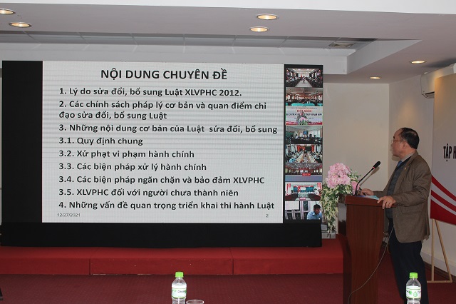 Tại hội nghị tập huấn các giảng viên đã tập trung truyền tải các nội dung liên quan đến một số vấn đề chung về pháp luật xử lý vi phạm hành chính, những điểm mới của Luật sửa đổi, bổ sung một số điều của Luật Xử lý vi phạm hành chính năm 2012 và những nội dung cơ bản của Nghị định 19/2020/NĐ-CP. Các quy định cụ thể về hình thức xử phạt, thẩm quyền xử phạt, biện pháp khắc phục, biện pháp ngăn chặn và bảo đảm việc xử phạt vi phạm hành chính và các quy định mới của Luật đổi và bổ sung một số điều của Luật XLVPHC năm 2012 liên quan đến xử lý vi phạm hành chính.