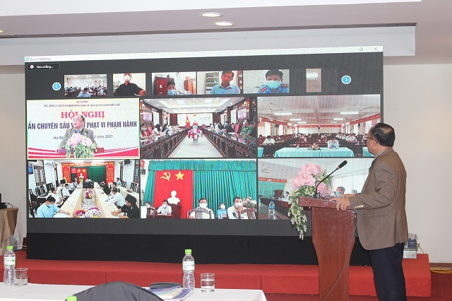 Hội nghị diễn ra rất sôi nổi khi các giảng viên và đại biểu tại các điểm cầu cùng trao đổi về những khó khăn, vướng mắc hiện nay trong công tác xử phạt vi phạm hành chính, đưa ra các giải pháp khắc phục để quá trình triển khai nhiệm vụ này đạt được hiệu quả hơn nữa trong thực tiễn xử phạt vi phạm hành chính, cũng như thực hiện các quy định pháp luật về xử phạt vi phạm được thống nhất, đồng bộ. Đồng thời những ý kiến của các địa phương nêu tại hội nghị về các tồn tại trong quá trình thực thi pháp luật xử phạt vi phạm hành chính là rất quan trọng để Cục QLXLVPHC&TDTHPL tổng hợp phục vụ công tác cho việc tiếp tục xây dựng và hoàn thiện các quy định về xử phạt vi phạm hành chính phù hợp hơn với sự phát triển của kinh tế xã hội.
