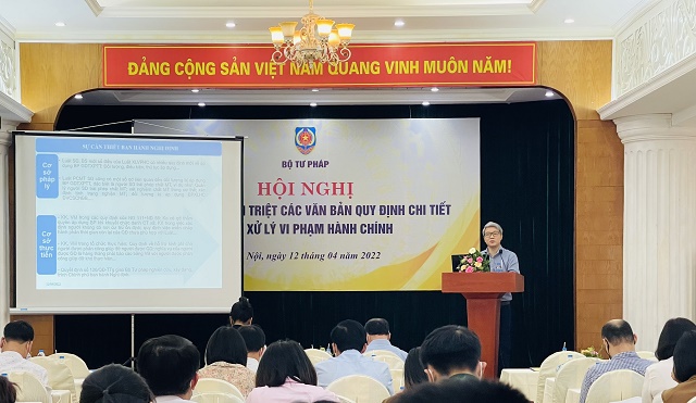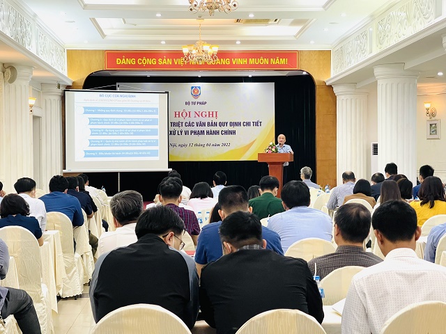 Sáng ngày 12/4/2022, Bộ Tư pháp đã tổ chức “Hội nghị phổ biến, quán triệt các văn bản quy định chi tiết Luật Xử lý vi phạm hành chính” do đồng chí Đặng Thanh Sơn – Cục trưởng Cục Quản lý xử lý vi phạm hành chính và theo dõi thi hành pháp luật chủ trì. Tham gia Hội nghị có các đại biểu đại diện cho các cơ quan: Bộ, cơ quan ngang bộ, cơ quan thuộc Chính phủ, Tòa án nhân dân tối cao, Kiểm toán Nhà nước, đại diện các UBND, Sở Tư pháp của các tỉnh, thành phố trực thuộc Trung ương thuộc khu vực miền Bắc, Bắc Trung Bộ.